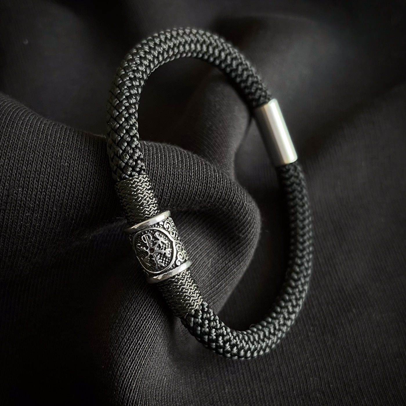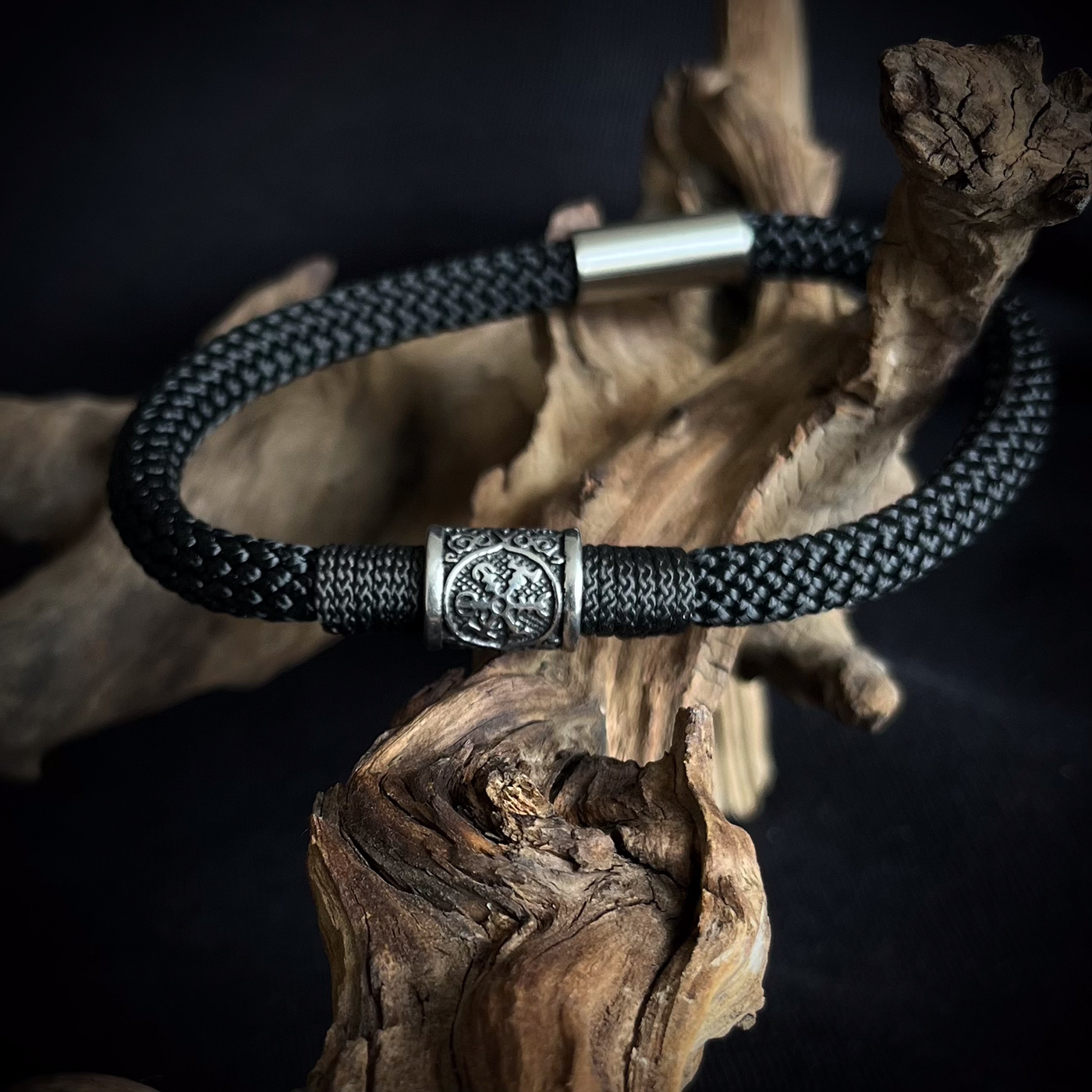 Entdecke das schlichte und elegante Armband, inspiriert von den alten nordischen Sagen. Veredelt mit einem hochwertigen Edelstahl-Bead, der nordische Zeichen und Muster trägt, verbindet dieses Armband zeitlose Ästhetik mit der mystischen Symbolik vergangener Zeiten. Der robuste Magnetverschluss sorgt für sicheren Halt und Komfort, während die stilvolle Blechdose, in der das Armband geliefert wird, es zu einem perfekten Geschenk macht. Ein Accessoire, das Stärke und Eleganz vereint – ideal für alle, die die Faszination der nordischen Mythologie in ihrem Alltag tragen möchten.